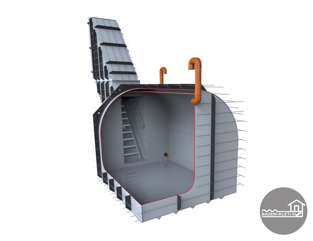 V sodobnem svetu je vedno dobro najti kakšno bližnjico, s katero se da privarčevati vaš denar. In prav to vam ponuja naša vgradna klet . Zasnovana je tako, da vam jo vgradimo z minimalnim gradbenim posegom, dela pa zaključimo v maksimalno treh dneh. Sama vgradnja je hitra in cenejša v primerjavi z betonskimi kletmi. Velika prednost pred betonom je tudi ta, da so naše kleti 100% zrakotesne, kar pomeni, da je skrb glede prehajanja zemeljske vlage ali podtalne vode odveč. Ker izkorišča konstantno temperaturo zemlje, dodatna energija za hlajenje ni potrebna.